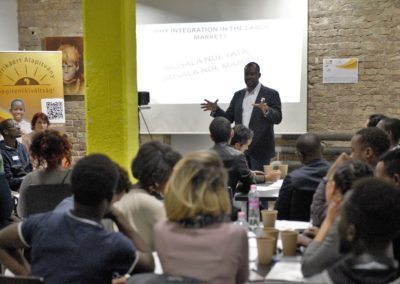 Après l’enregistrement, il’y avait des présentations interactives et intéressantes sur plusier topique en lien avec le monde du travail. France Mutombo, le président de la Fondation pour l’Afrique comme un Afriquen qui est venue en Hongrie à partager son expérience et réflexions sur la recherche du travail, attitude et motivation de chercheur d’emploi, et les différences culturelle. Emőke Takács, Gestionnaire du Programme AfromMag a introduit les services dans le cadre du projet Afro mag. Enfin, avec le support de notre coach expert Ágnes Mező, les participants ont eu la chance d’apprendre des conseils utiles sûrs comment se préparer pour la recherche du travail et quelles sont les principales caractéristiques du bon et informatif CV et lettre de motivation. Pendant l’événement les participants pouvaient meilleurs se connecter, et ils ont eu des taches interactives dans les petits groupes et par deux. L’événement du club a également fourni une plate-forme pour partager les expériences connexes des participants. Nous attendons avec inpatience notre prochain événement de club, qui aura lieu au début décembre !