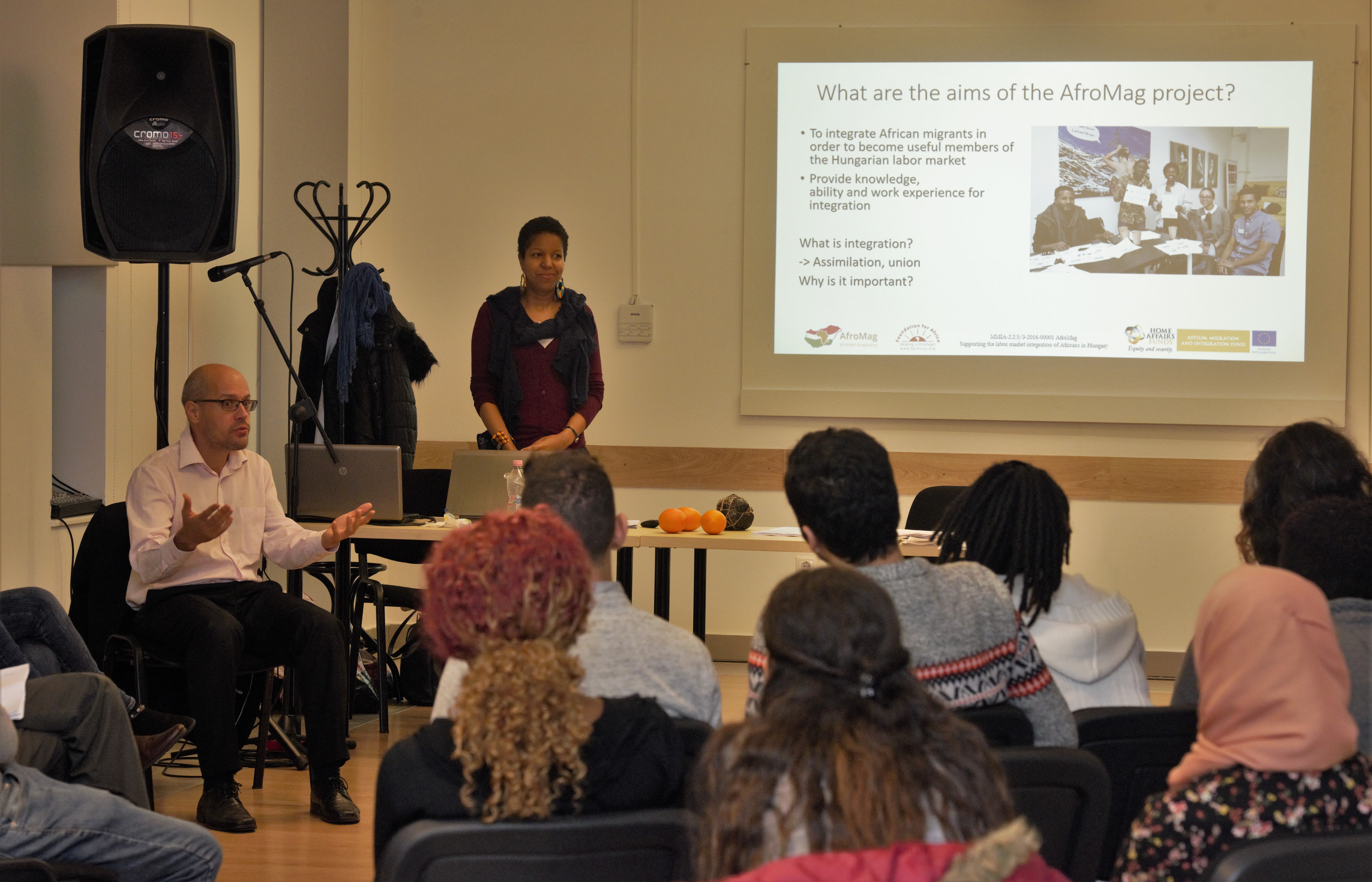 Le 24 novembre le centre Culturel Eötvös 10 a accueulli les membres enthousiastes du projet AfroMag. La formation était une nouvelle occasion pour les membres africains pour se revoir et partager leurs expériences en Hongrie. Une exposé a présenté les avantages du volontariat, les devoirs des volontaires et les raisons pour lesquelles on s’engage au volontariat. Au final les volontaires de la Fondation pour l’Afrique ont présenté leurs expériences, devoirs et projets menés en Afrique. Dans le cadre du programme AfroMag les intéressés peuvent s’essayer en théorie et également dans la pratique en tant que volontaire .